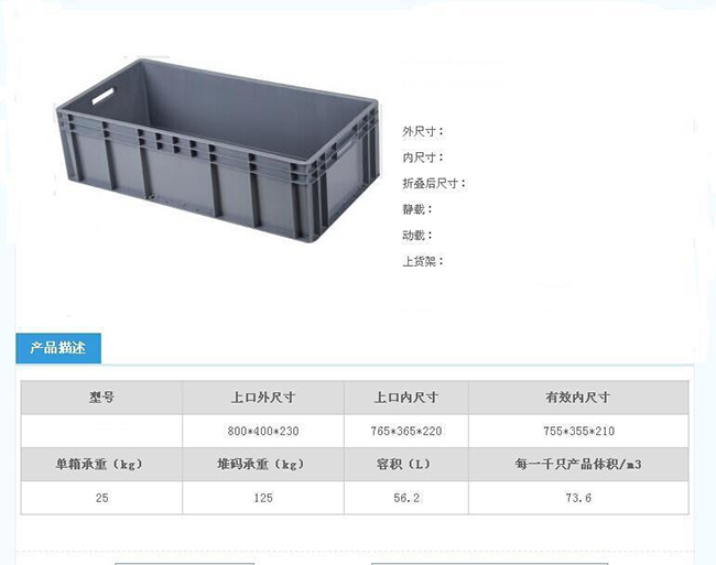 塑料箱(內(nèi)尺寸765X365X220 外尺寸800X400X230)